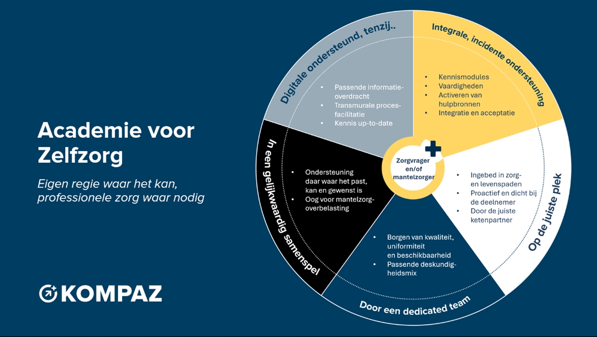 Deelnemende organisaties maken transmurale afspraken, zodat de juiste ondersteuning op het juiste moment (lees: proactief) in het zorg- en of levenspad en op de juiste plek wordt gegeven. De academie biedt daarnaast waar van toepassing een vangnet én opvolging voor deelnemers die een activiteit hebben gevolgd. Deze opvolging kan zich zowel richten op de juiste uitvoer van vaardigheden, maar ook op het opvolgen van de belasting van de mantelzorger.
